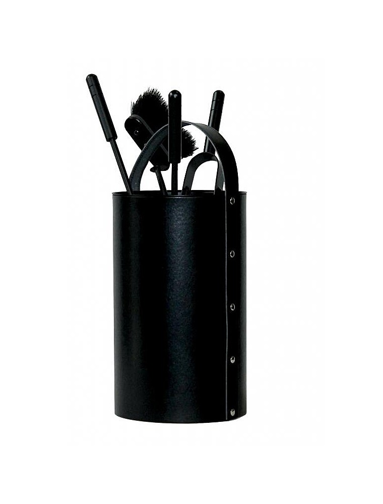 Luxusní krbová souprava s úložným boxem v různých varintách (béžová, černá a tarnoptik). Nářadí je černé.